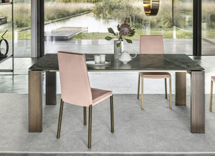 Il tavolo Atlante è interamente in legno, disponibile nelle finiture noce canaletto e rovere coke termo-trattato. Le gambe a cavalletto della larghezza di 17 cm gli conferiscono un aspetto maestoso. La bisellatura del piano mette in risalto le calde venature del legno. Il tavolo è dotato di un sistema di allunghe con guide in alluminio anodizzato. Le allunghe, da 40 cm, sono interne in biglia con il piano.
