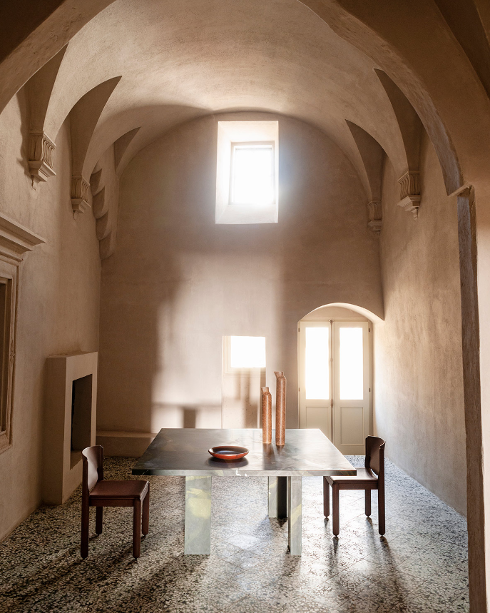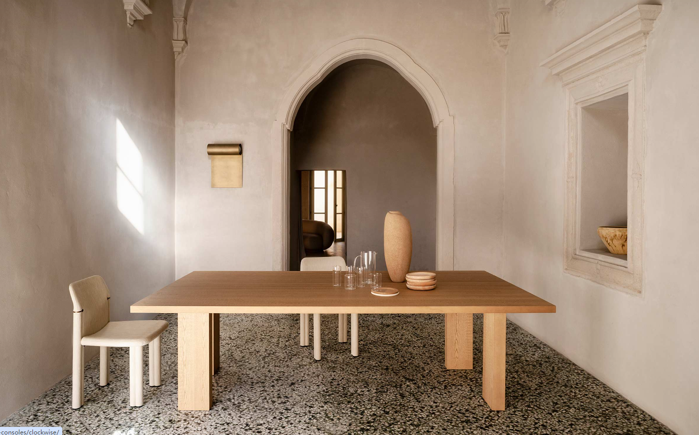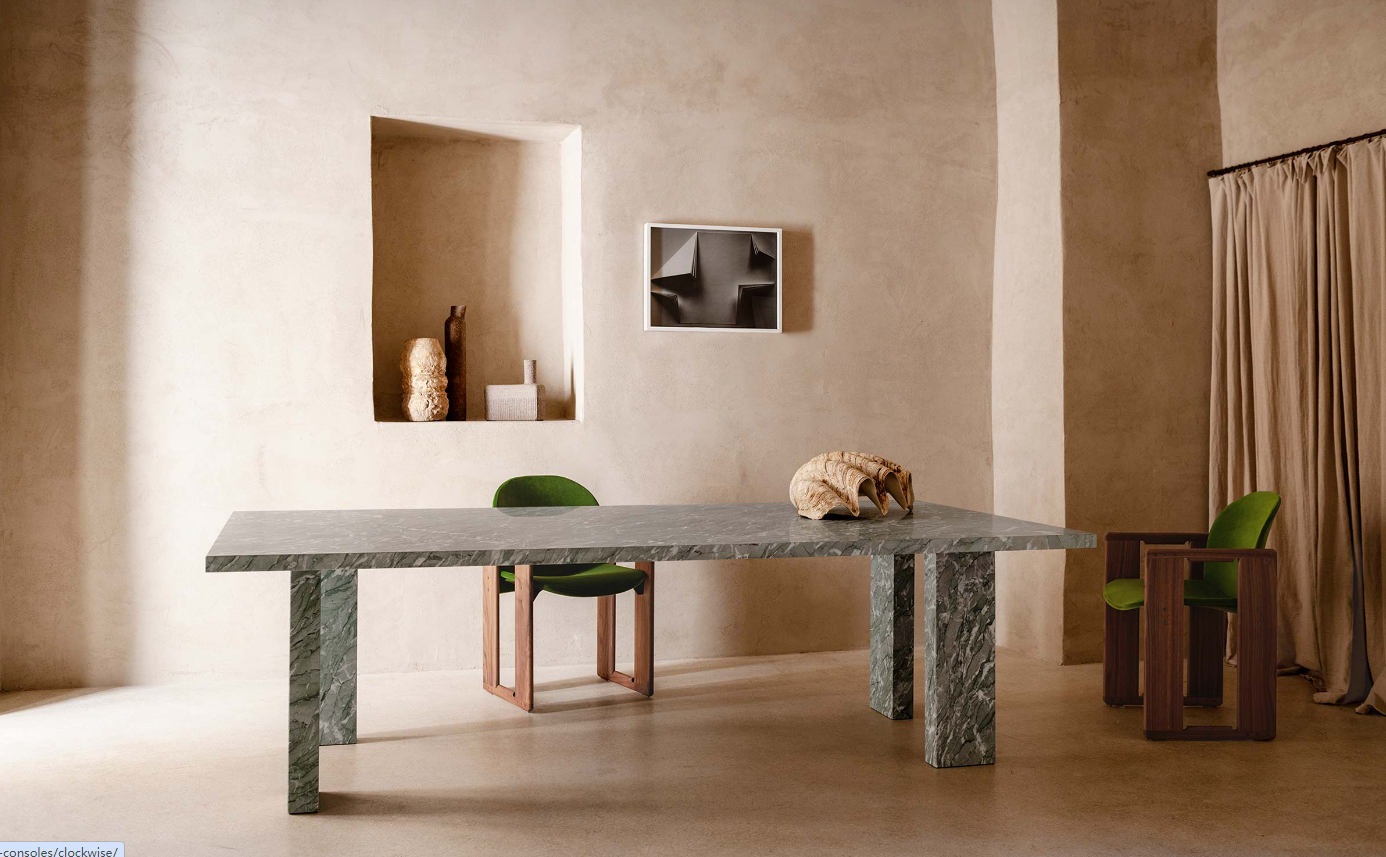 Simple and monumental, Clockwise reveals its subtle humour only to those who manage to grasp the play of steps that define the position of the legs and the alternation of their positioning in the corners of the top. Born from the first collaboration between Tacchini and designer Michael Anastassiades, it is a table with an important presence, which at the same time evokes a sense of lightness in the legs that chase each other almost dancing, rotating around a choreography that suggests the right dance steps to experience it fully. At different rhythms, following the metaphor of a gesture, the movements and activities that take place around the table can thus be told from time to time unexpectedly, as fluid and informal as the environments in which the table itself can be placed.