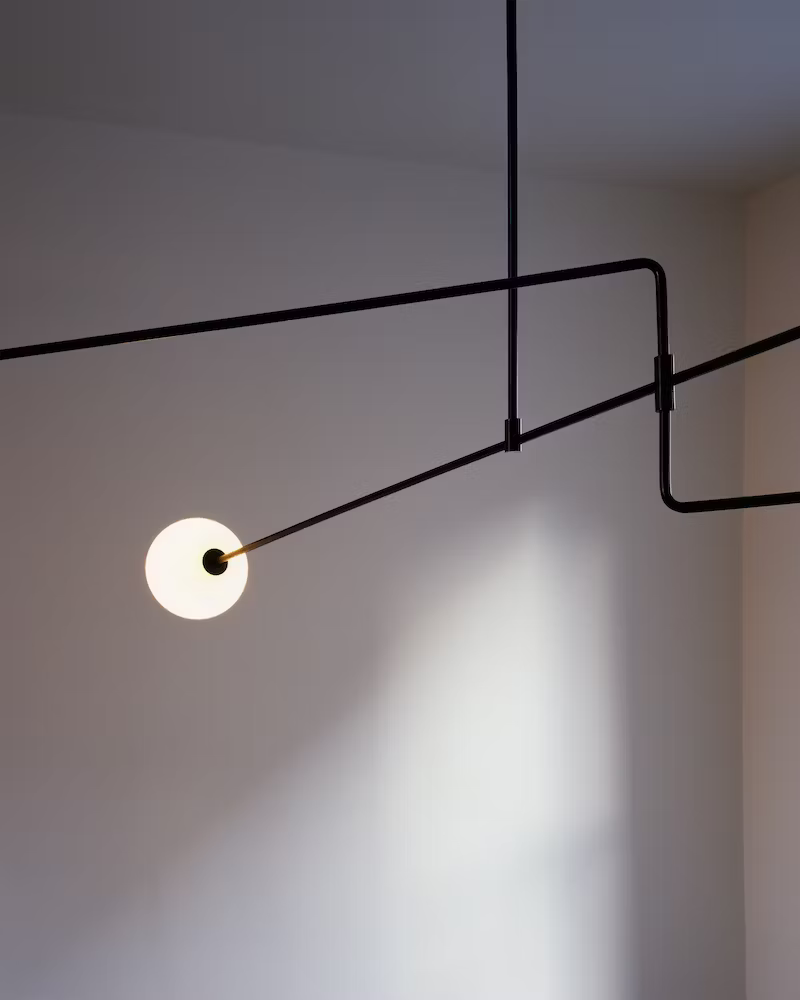This collection of fixtures uses the standard unit of the light tube as a measure. Through the alternation of 1m and 0.5m modules, it creates a rhythmic language of recording space. The designs evolve as a parallel progression of rods, combining five variations of standard linear LED bulbs and metal tubes of the same diameter. With this series, Michael Anastassiades expands the compositional possibilities of some of the most structural elements of lighting, engaging the viewer in a rigorous yet playful exercise in measuring.