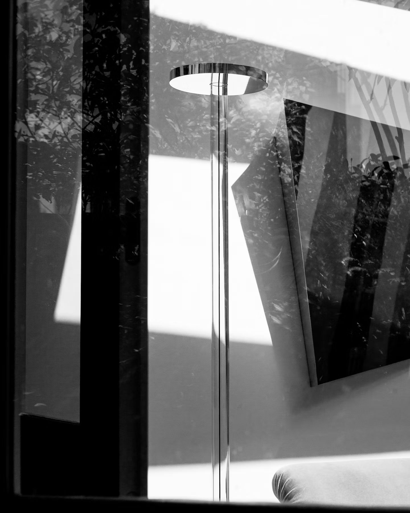This family of floor lamps proposes an interchangeable lighting solution attached to a marble block. The exercise is an attempt to provide minimal support for the linear lighting elements through the simple gesture of touching the marble base with an invisible magnetic connection. The result is a distilled composition of basic elements.