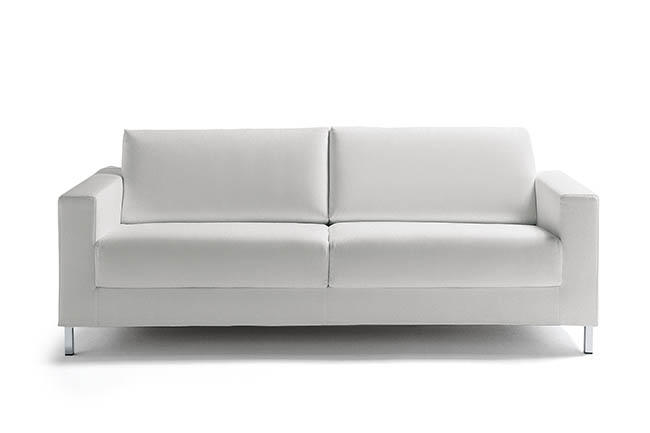 James combines innovative design and contemporary style, featuring 12 cm. legs in hammered silver metal. The bed with its mattress folds out effortlessly without the need to remove the seat and back cushions. The height of the legs makes it easy to clean under the sofa. The legs are also available chromium plated and in wengé, cherry or natural finish.