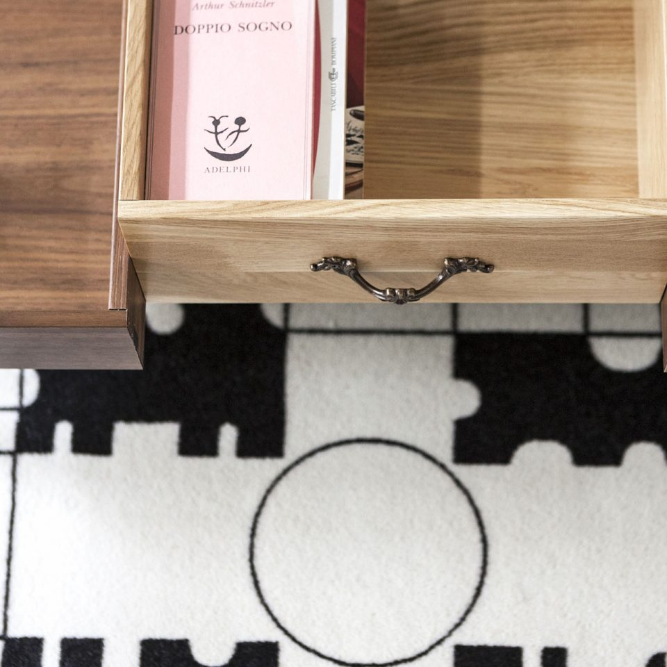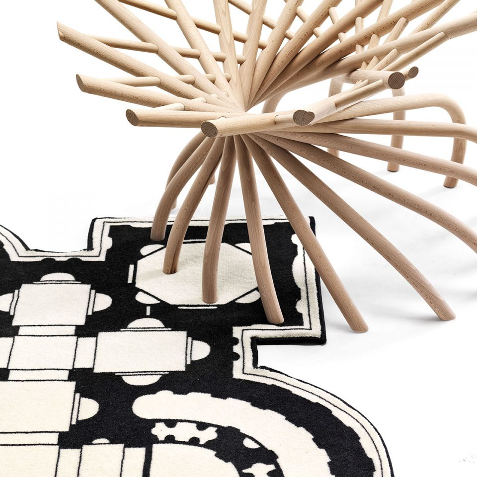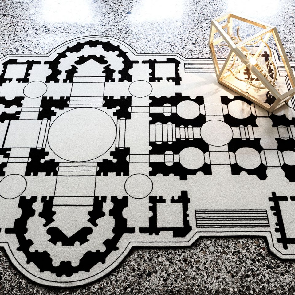 Appunti è un tappeto, realizzato 80% lana e 20% poliammide stampato in bianco e nero con bordo a filo. Ispirato ai blocchi per gli appunti e agli scarabocchi che usualmente si fanno sui fogli quando si annota o si disegna qualcosa che casualmente cadono a terra e li si adagiano.