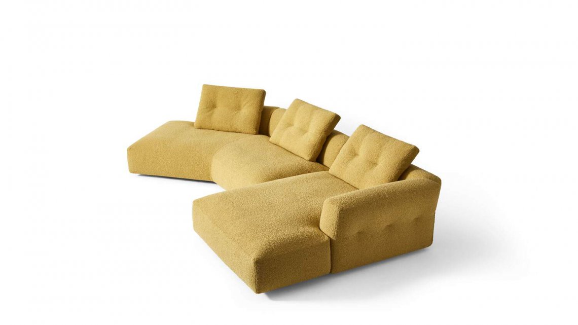 絕對的舒適感,以大膽尖銳的個性重新演繹。Sengu Bold是Sengu Sofa系統的一個新款式,這款沙發以開放的造型慶祝歡聚時刻,具有天然的誘惑力。新型號舍棄了原有的日本風格木底座,以明確的姿態讓柔和的曲線直達地面,希望通過寬大的體積和更突出的軟墊來強調其前身的熱情好客和舒適。專用的覆蓋面料也經過“大膽”設計:紋理更粗,似乎要進一步突出軟墊的柔和線條。Sengu Bold是一款落地沙發,特點在于永不落俗套的各種組合,均采用天然的材料和色彩,由不同尺寸的模塊組合而成,如中央模塊、轉角模塊、終端模塊、帶或不帶扶手,也可以加入躺椅和沙發凳,帶來極致的舒適感。座椅的框架是配有彈力帶的膠合板,可確保最大的舒適感;椅墊由可以拆卸的兩部分組成,內部是含有部分有機材料的不同密度聚氨酯泡沫,外部填充再生PET吹制纖維,表面覆蓋再生PET帆布。