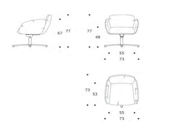 Dimensioni: larghezza 73 cm, altezza 77 cm, profondità 73 cm.