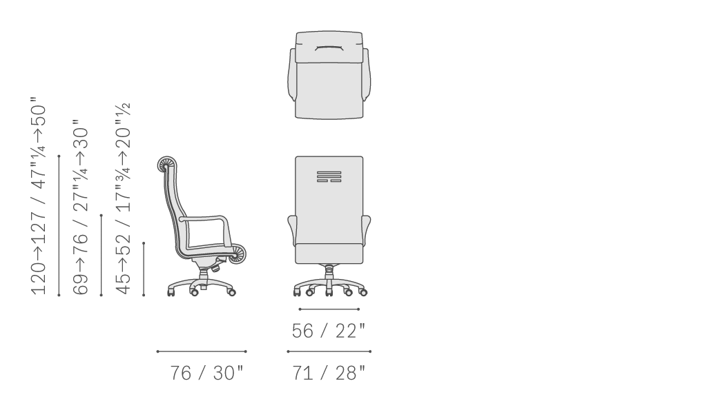 Forum扶手椅采用黑色噴漆或拋光鋁五支腳底座。所有座椅均可旋轉(zhuǎn)360°,并可以調(diào)整高度。President和Executive版本的座椅和靠背具有覆蓋軟皮的絎縫裝飾。覆蓋Pelle Frau?軟皮。President、Executive和Managerial扶手椅同時(shí)也提供靠背振蕩運(yùn)動(dòng)功能。對(duì)于Forum President和Executive扶手椅,可以選擇通過(guò)電氣動(dòng)裝置延長(zhǎng)腰枕和座椅的功能。