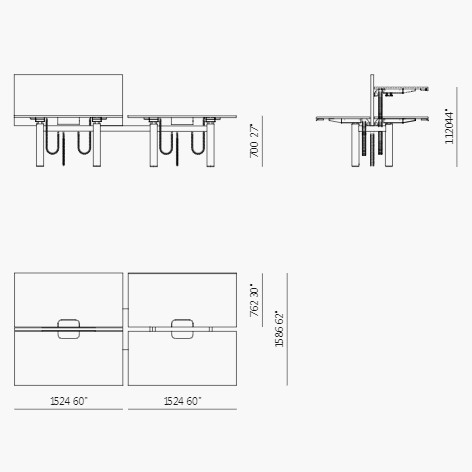 Galleria is a bench desk system with height adjustable desktops, designed for either fixed desk or co-working spaces. Perfect in open-plan offices to enable the optimum use of space. The dividing panel ensures privacy - both visual and acoustic - making it easier for the worker to concentrate. Round legs support the aluminium structure. A tray beneath the desktop gathers the cables and keeps them organised, whilst smaller trays are also available for the power strips. The height adjustable desk top is available in melamine, wood or lacquered.