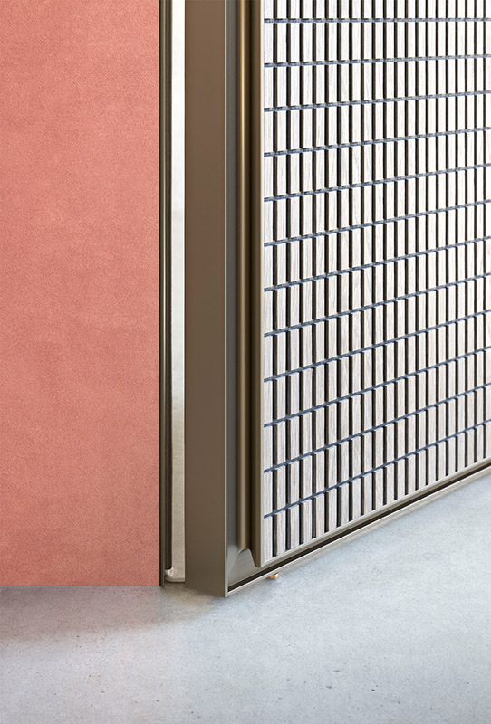 La porta per interni Altaj, disegnata da SBGA, è concepita per andare oltre il minimalismo della porta a filo muro. Il modello infatti non scompare nella parete, ma è anzi evidenziato dal profilo metallico che incornicia l’anta e ne esalta la finitura.
