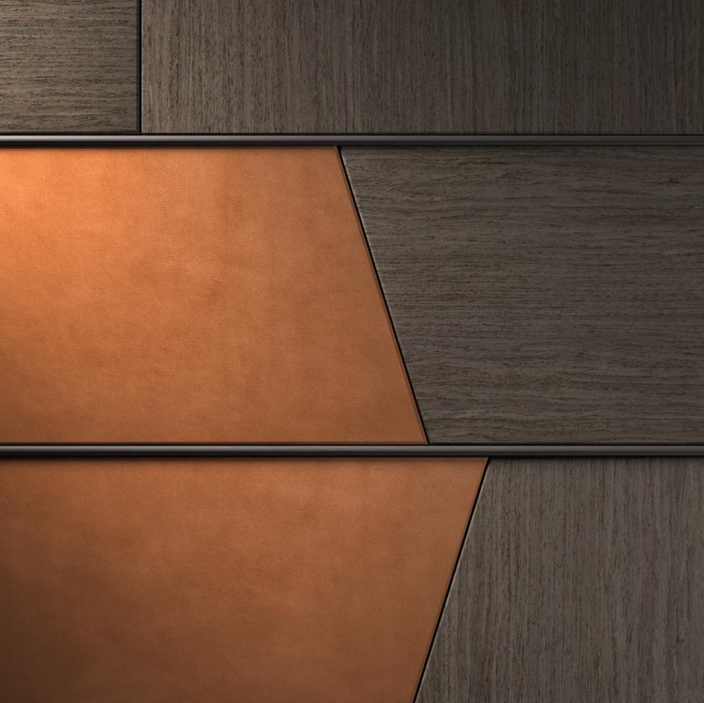 Terre的設(shè)計(jì)讓人聯(lián)想到幾何鳥瞰圖。打磨成圓形的木條、大理石或皮革組成了用途極為廣泛的定制模塊,模塊之間用圓形截面的木條隔開。