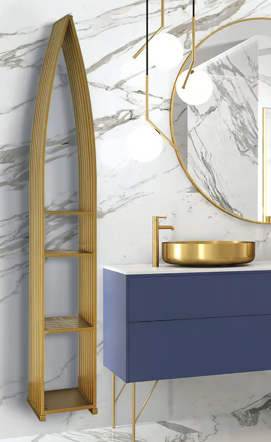 With a rigorous and slender upward design GUGLIA contains inside a niche where the wipes can be placed on functional shelves. The vertical development and the terminal part developed in an arch, they look at the style of Gothic architecture.