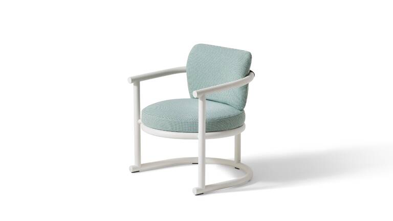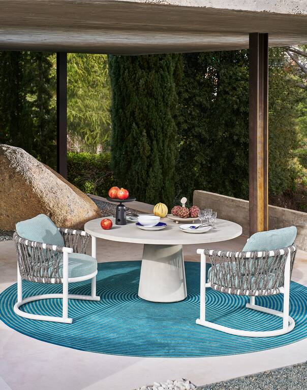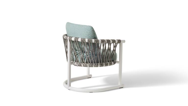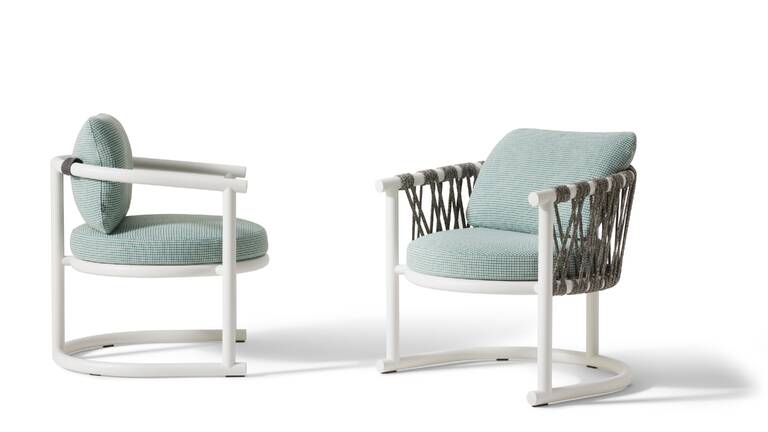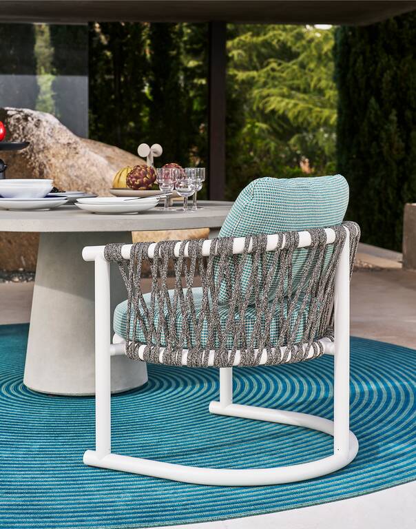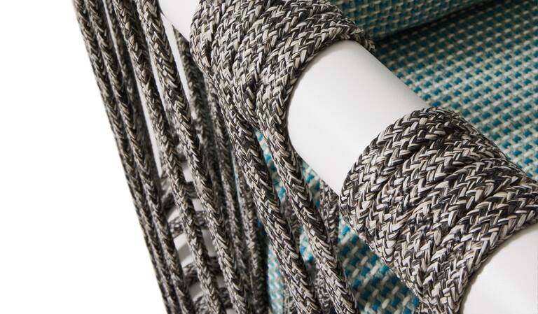 Patricia Urquiola設(shè)計(jì)的這款休閑扶手椅充滿(mǎn)地中海風(fēng)情,與專(zhuān)為舒適的戶(hù)外生活而設(shè)計(jì)的家具系列相呼應(yīng),是對(duì)當(dāng)代休閑生活的高雅邀請(qǐng)。鋁管椅面和靠背上纏繞著手工編織的聚丙烯繩。柔軟的可拆卸座墊底部由三條尼龍搭扣帶進(jìn)行固定。在無(wú)編織款式中,靠墊通過(guò)拉鏈與座墊相連,并由兩條聚丙烯帶通過(guò)不銹鋼按扣掛在框架上。