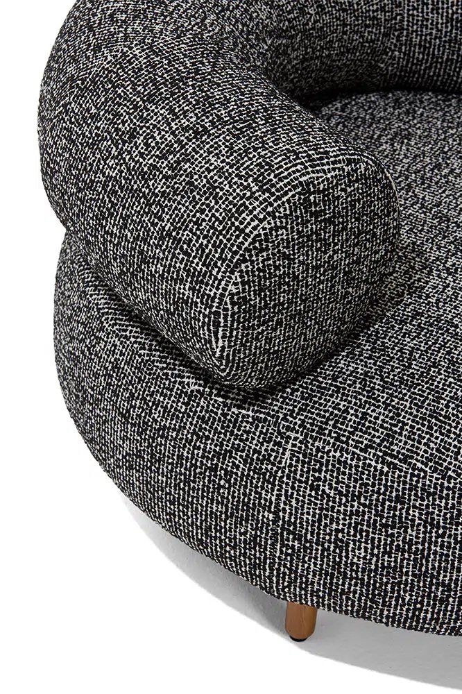 All that changes is the setting: Elisa Ossino steps outside the home and takes the virtues of her interior chair and table collection into the open air. The sofa and armchair share the same fluid forms but upholstered in a durable outdoor polypropylene fabric particularly pleasant to the touch, and featuring Iroko feet. The coffee tables, which can be paired to create new iconographies, are in Granito Nero Assoluto and Quarzite Grigia, treated with Olio Idro.