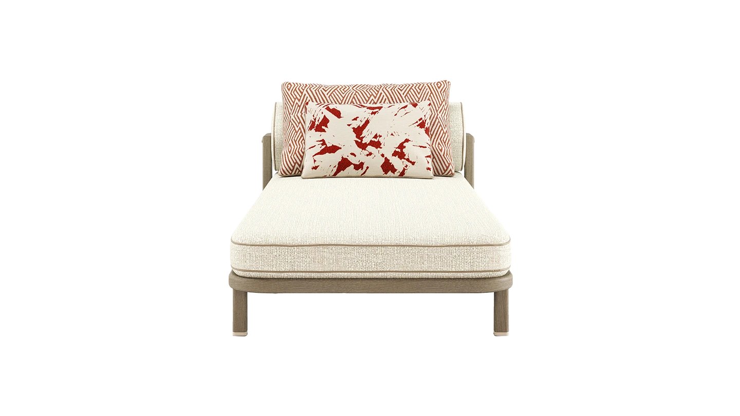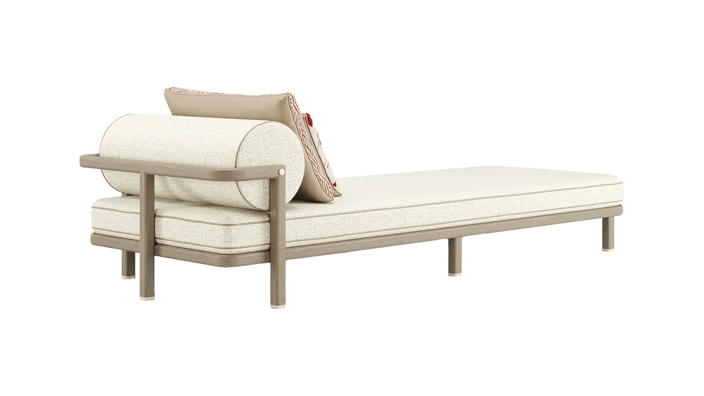 "Poolside just got even more picturesque… Introducing our SAINT-TROPEZ Sun Lounger, designed to bring style to life by the pool. It’s best paired with blue skies, cold drinks and the rest of the SAINT-TROPEZ collection. Combining simple shapes with premium materials, the seat and bolster cushion are crafted from soft fabric and highlighted with leather piping. The structure marries muted stainless steel with solid wood. "