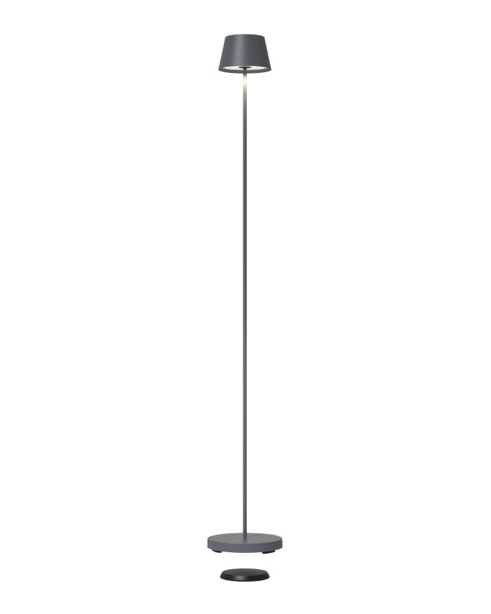 The outdoor floor lamp SEOUL made of coated aluminium sets stylish accents. Whether in the garden, on the balcony or in the flat. Thanks to the IP65 protection class, the small lamp is an all-rounder for every occasion. The built-in, infinitely variable touch dimmer on the top of the lamp allows a convenient change of light intensity and colour temperatures. After the battery runtime of up to 62 hours, the SEOUL is recharged in a user-friendly way thanks to the charging station.