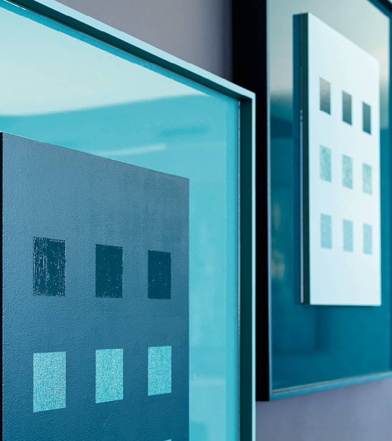 Square embossed painting with shiny poster.