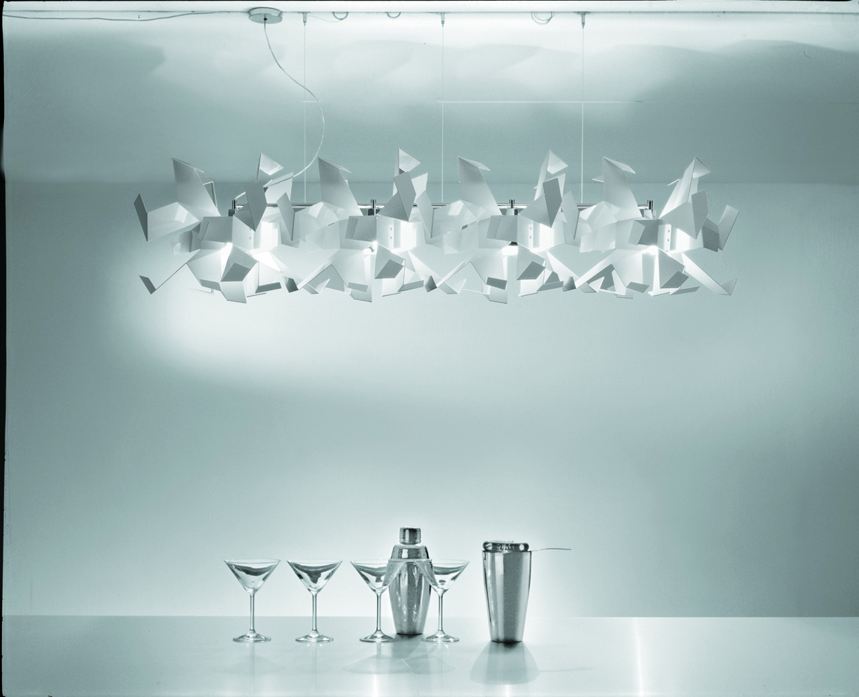 Glow pendant lamps can be arranged in horizontal