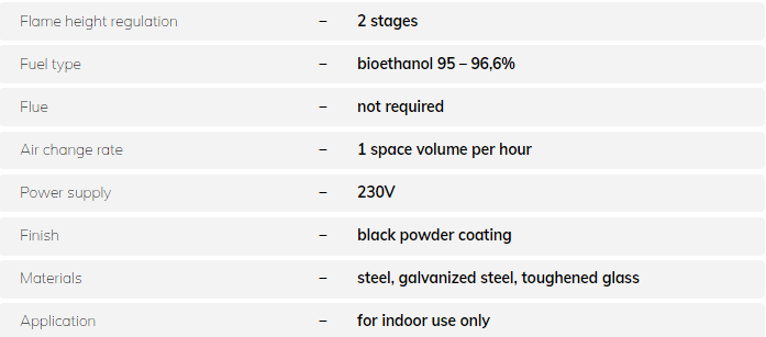 Neo Fireplace is an automatic bioethanol fireplace with an implemented BEV Technology? and safety systems, such as heat, fuel spillage, and fuel level sensors. The True Zero Clearance feature allows the users to install this unit in construction made of combustible materials with the preservation of all security principles.