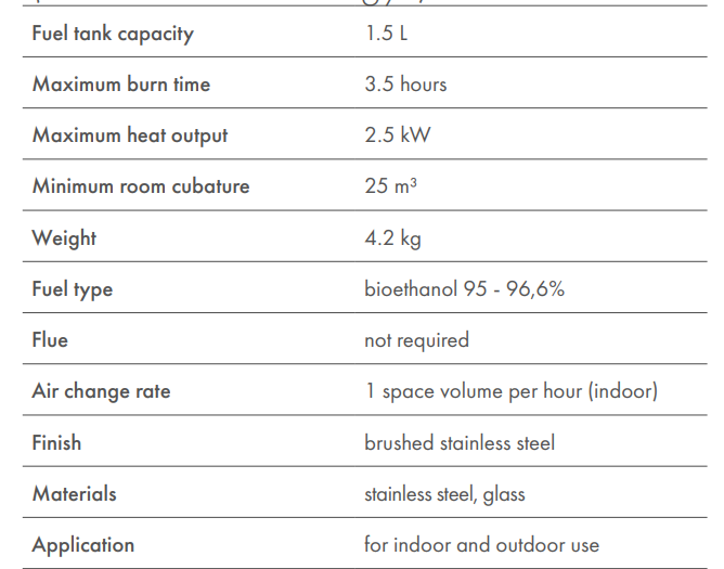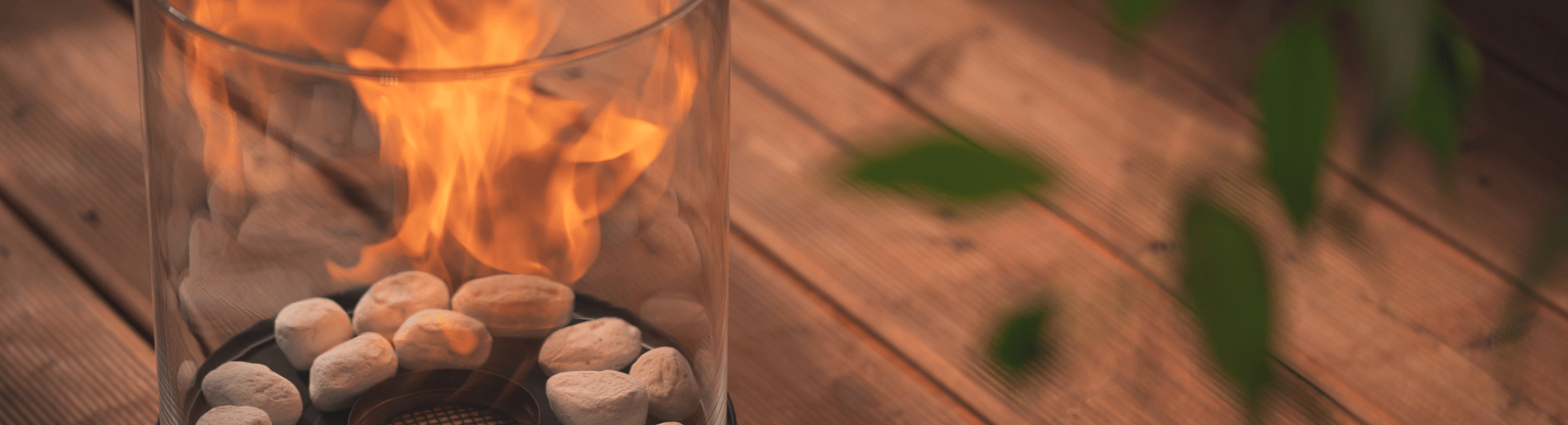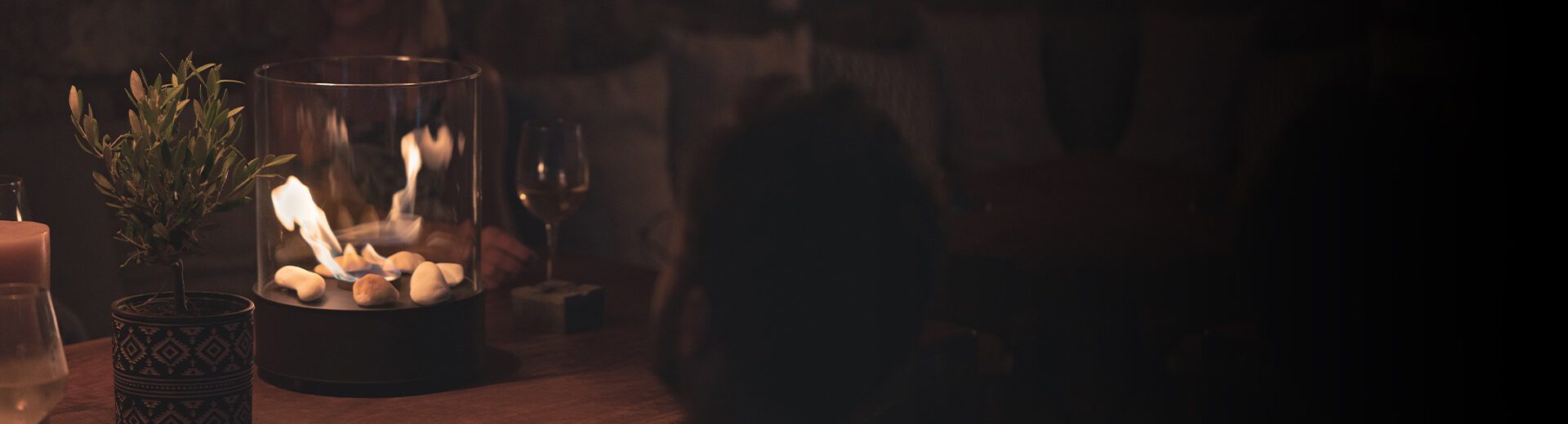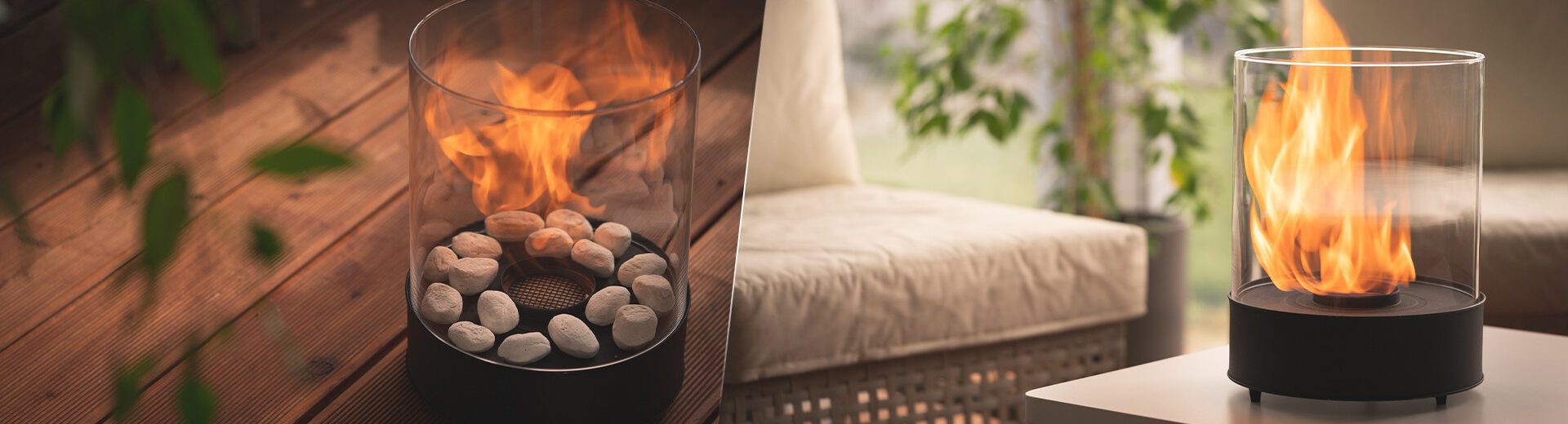 Chantico Glassfire is a round portable tabletop fireplace which can function as a decorative element anywhere you wish – inside or outside your home. High-quality construction is ensured by its black stainless steel base and removable glass cylinder. With this tabletop fireplace you can enjoy a real fire for up to 3.5 hours. Decorative stones, matches and a special tool to put the fire down are included in this tabletop fireplace set. Please note that bioethanol fuel is not included.