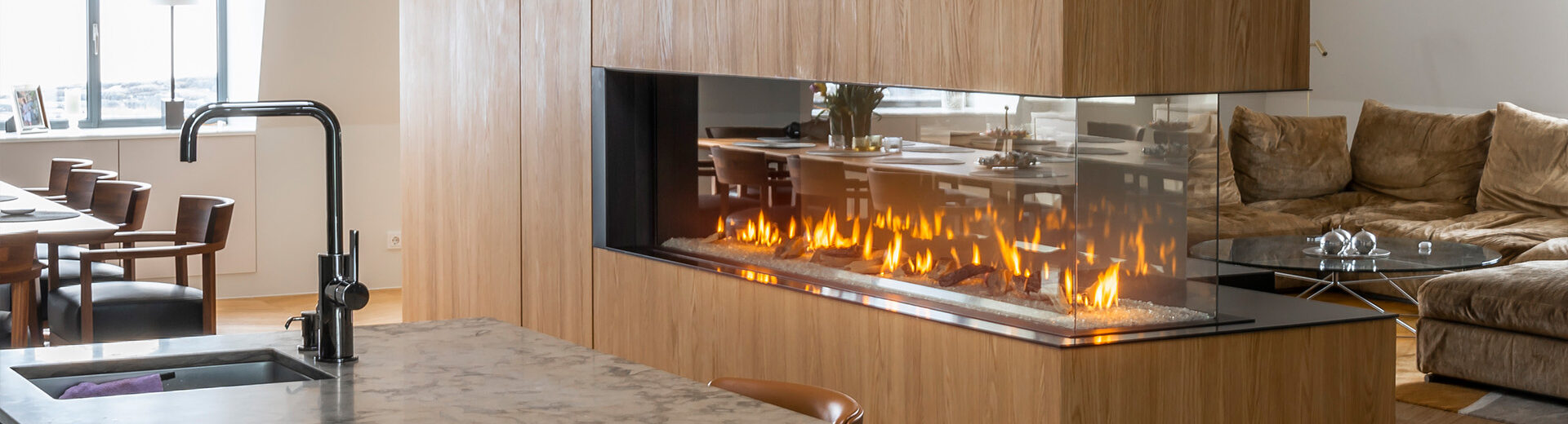 Sinatra is a custom gas fireplace with a conventional flue system that can be installed in an existing fireplace space or completely a new arrangement. The technological solutions used in our conventional flue gas fires allows us to create a fireline of any length you desire. Because we are the experts in designing non-standard solutions – to satisfy all of your needs.