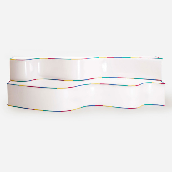 Designed in 1967 by the Florentine Radical group Archizoom, Superonda was the first sofa without a conventional frame. It is composed of two waves made from a polyurethane block cut into two parts with an S—shaped incision, which can be interlocked and stacked to produce different configurations. For its fitieth anniversary, Poltronova pays tribute to Superonda —an anti—design iconic piece of furniture that fully preserves its outrageously playful nature— by calling on all members of the Radical team to design a new, celebrative outfit for the six Superonda Specials: