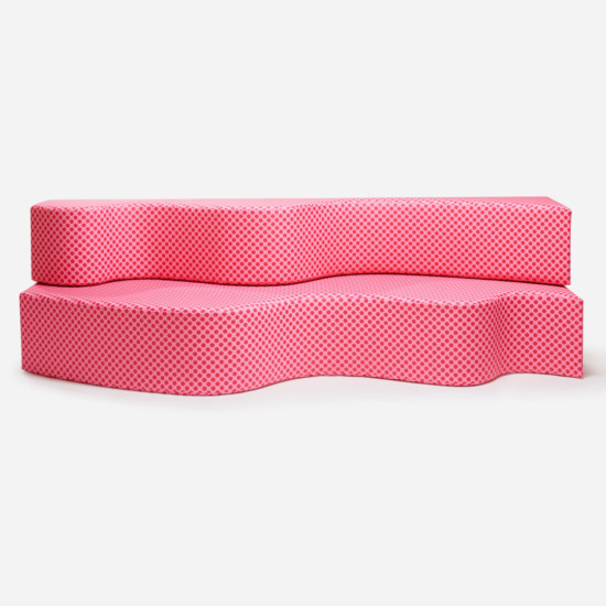 Designed in 1967 by the Florentine Radical group Archizoom, Superonda was the first sofa without a conventional frame. It is composed of two waves made from a polyurethane block cut into two parts with an S—shaped incision, which can be interlocked and stacked to produce different configurations. For its fitieth anniversary, Poltronova pays tribute to Superonda —an anti—design iconic piece of furniture that fully preserves its outrageously playful nature— by calling on all members of the Radical team to design a new, celebrative outfit for the six Superonda Specials: