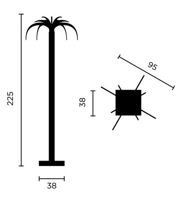 The prototype of the Sanremo floor lamp was an engagement present from Dario Bartolini to Lucia Morozzi, given to her in the villa in Roccamare designed by Ernesto Nathan Rogers. Sanremo is composed of a slender metal trunk topped by “foliage” like that of a stylized palm tree, formed by lanceolate transparent or fluorescent green methacrylate leaves that radiate light. The prototype also called for a sound similar to the song of a cricket, eliminated in the production version.