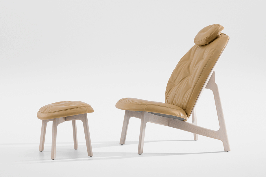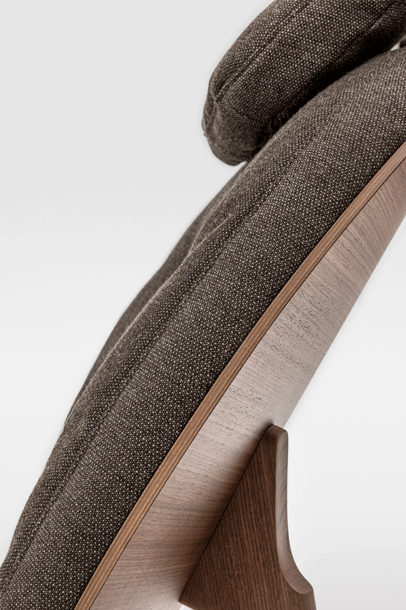 This expressive gesture makes the lounger appear sculptural and is at the same time an invitation to make yourself comfortable – put your feet up on ZENSO POUF. The striking cross-wood frame supports and carries the cantilevered back shell. The adjustable head cushion can be individually adjusted to the respective size. The lounger is characterised by a high level of seating comfort.