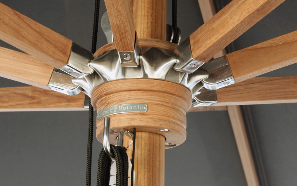 Looking at all the details, of the framework, of the cast stainless steel fittings, of the superb acrylic covers, you will quickly realize the Royal Botania Shady is way beyond what umbrellas were before. Shady is the summit of outdoor luxury.