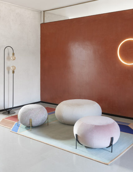 Geo pouf is an accessory that can be placed in any home and contract environment. It is a versatile element that can connect with diverse styles with a simple change of upholstery and choice of exclusive fabrics. Geo is a pouf that adds a touch of color and personality to any environment, while creating easy extra seating. The metal structure on which it rests enhances the design and even facilitates better cleaning. Fully removable covers.