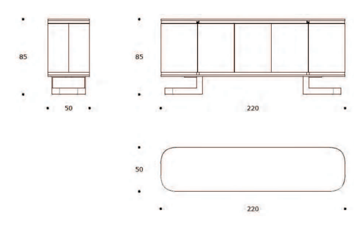 Dimensioni: larghezza 220 cm, altezza 85 cm, profondità 50 cm
