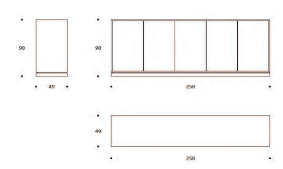 Dimensioni: larghezza 250 cm, altezza 90 cm, profondità 49 cm