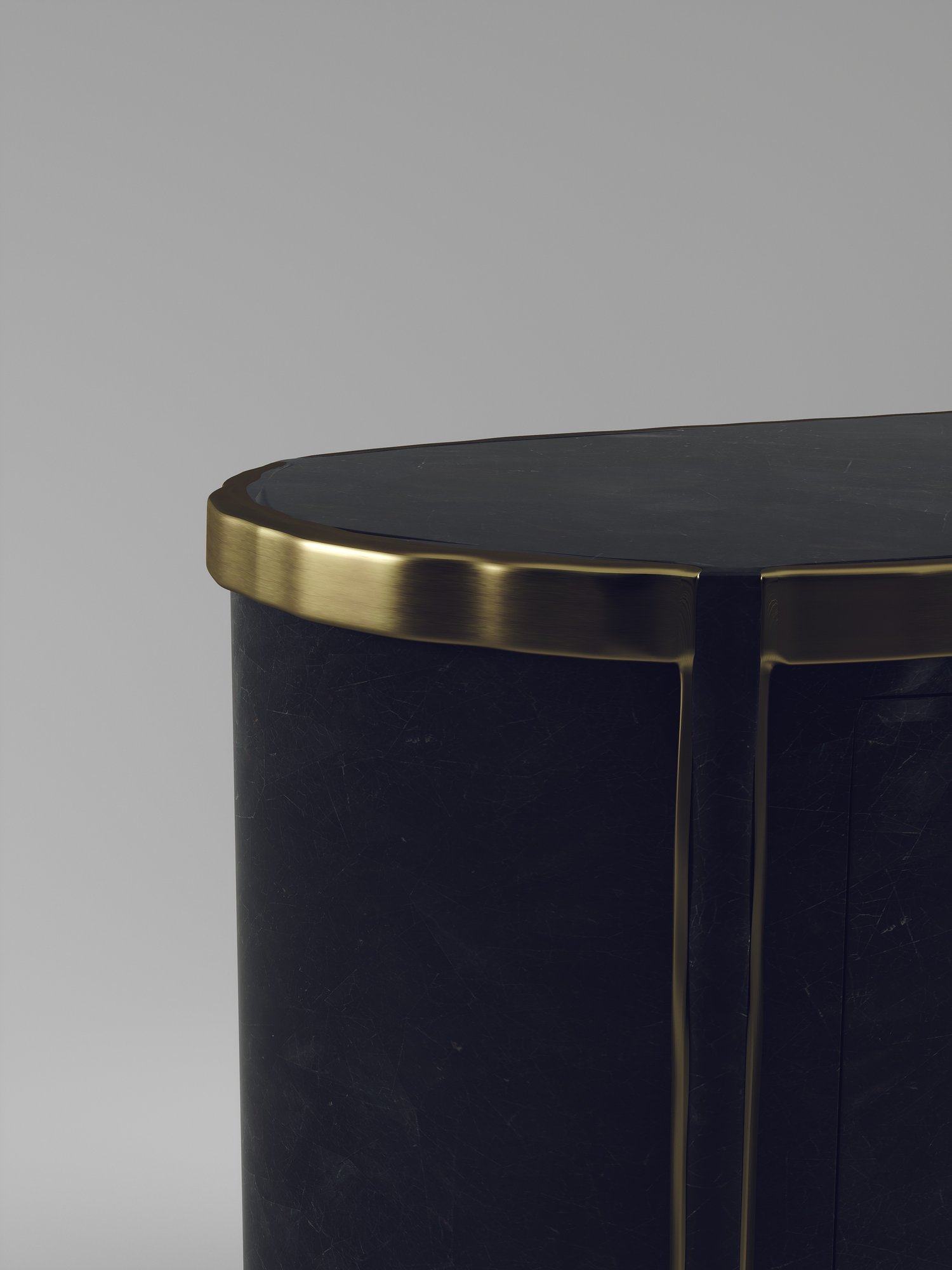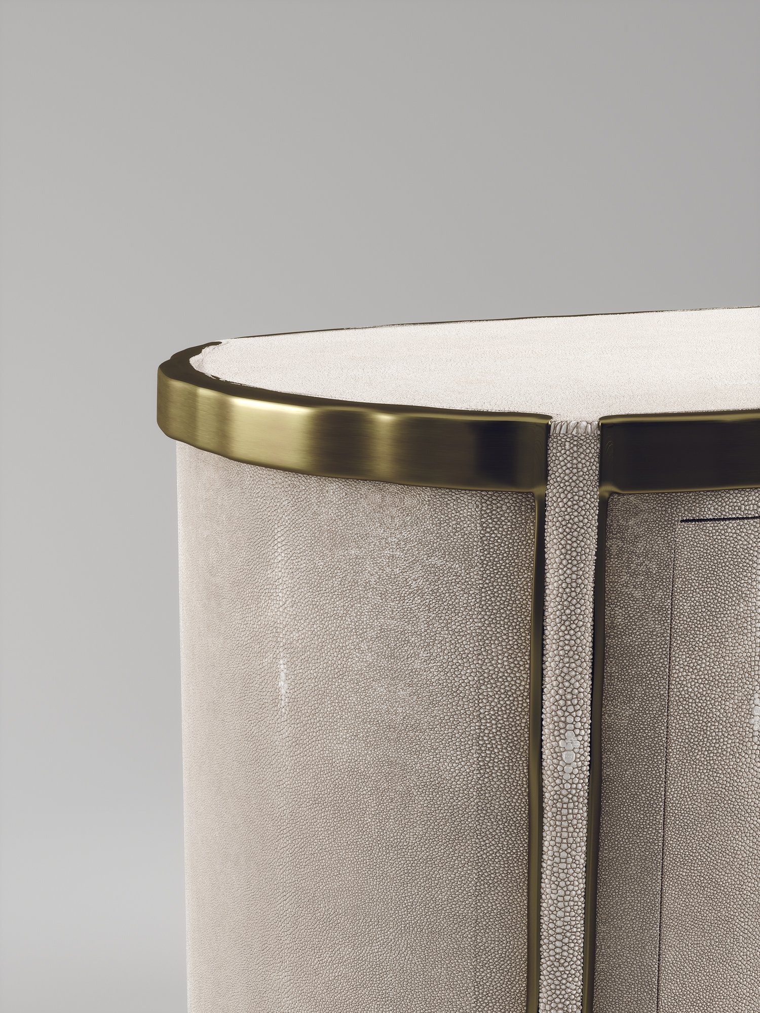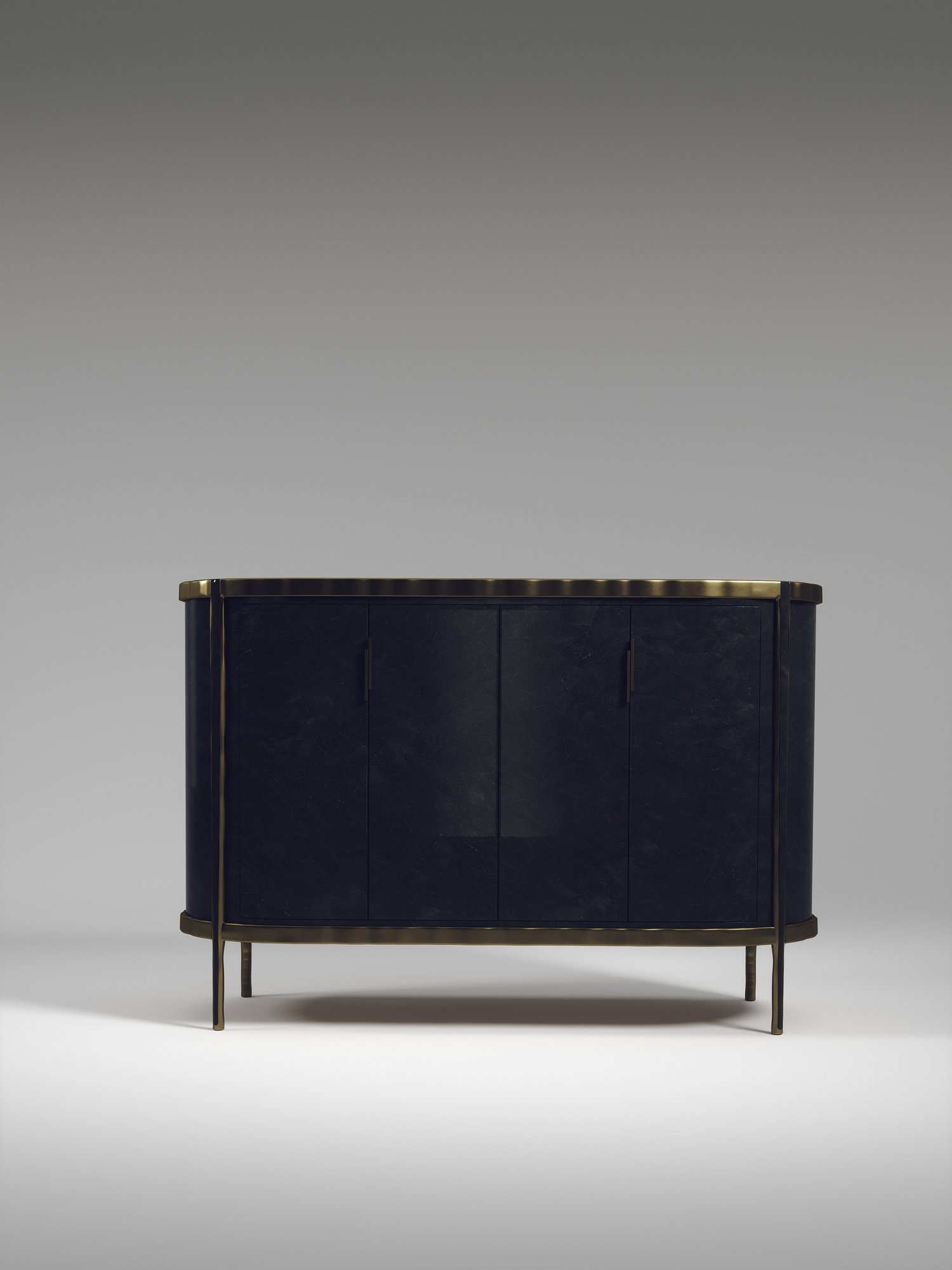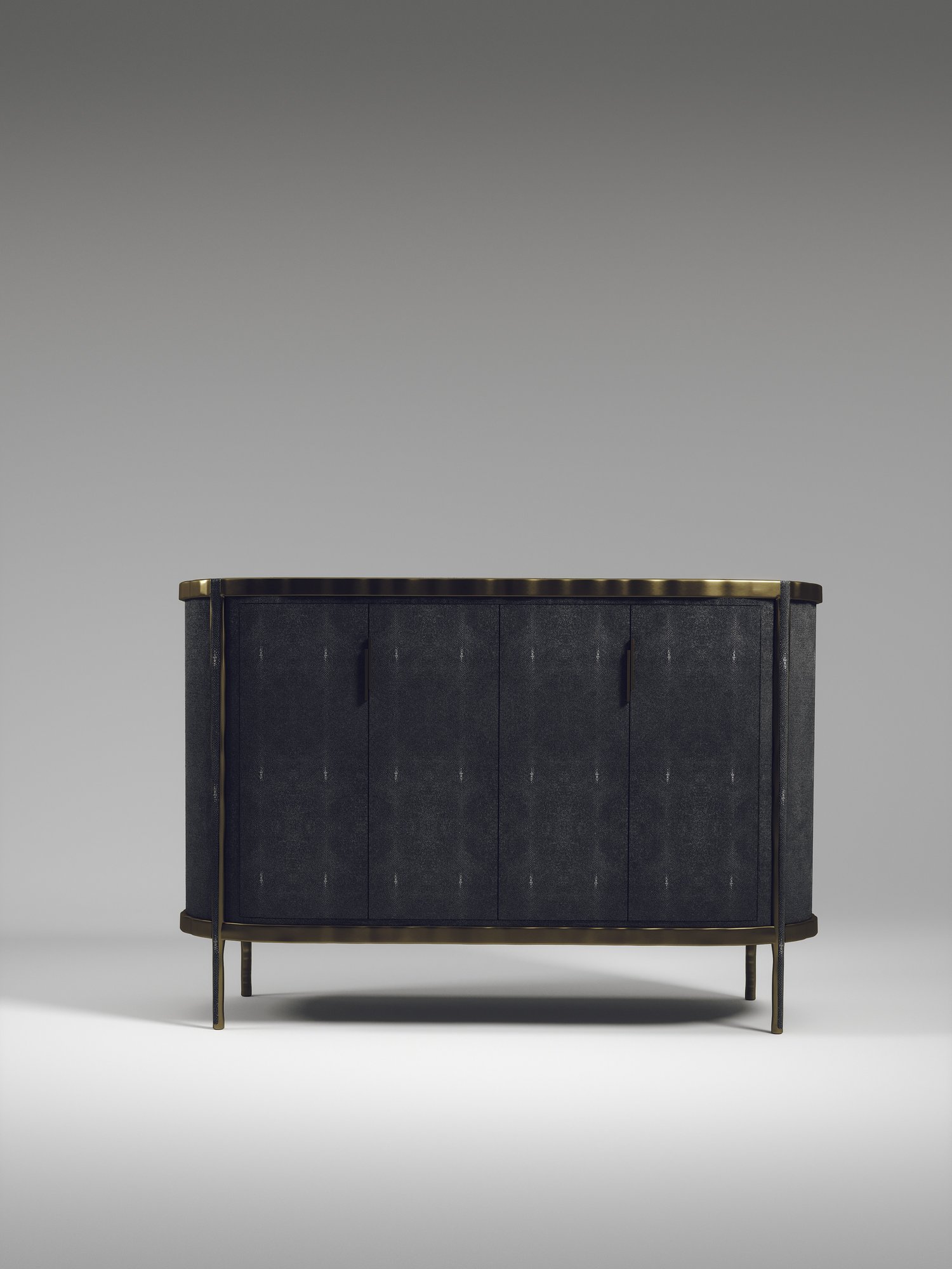 The Melting Buffet by R&Y Augousti is an elegant piece for any space. The cream shagreen inlaid piece is classic, but accentuated by their signature organic melting bronze-patina brass frame. This credenza includes 4 doors that opens up to 3 shelves. This piece is part of the Melting Capsule. Available in other finishes.
