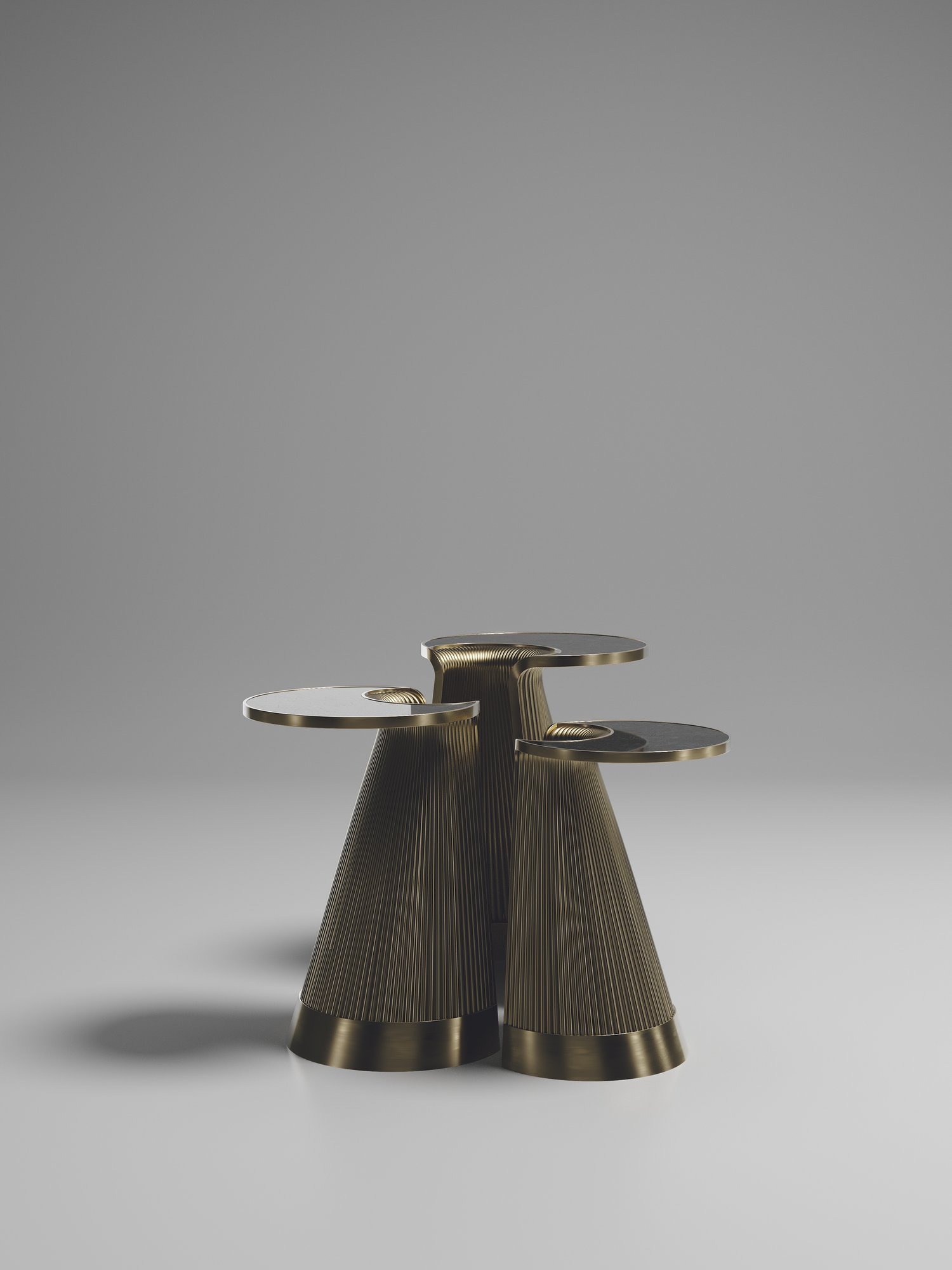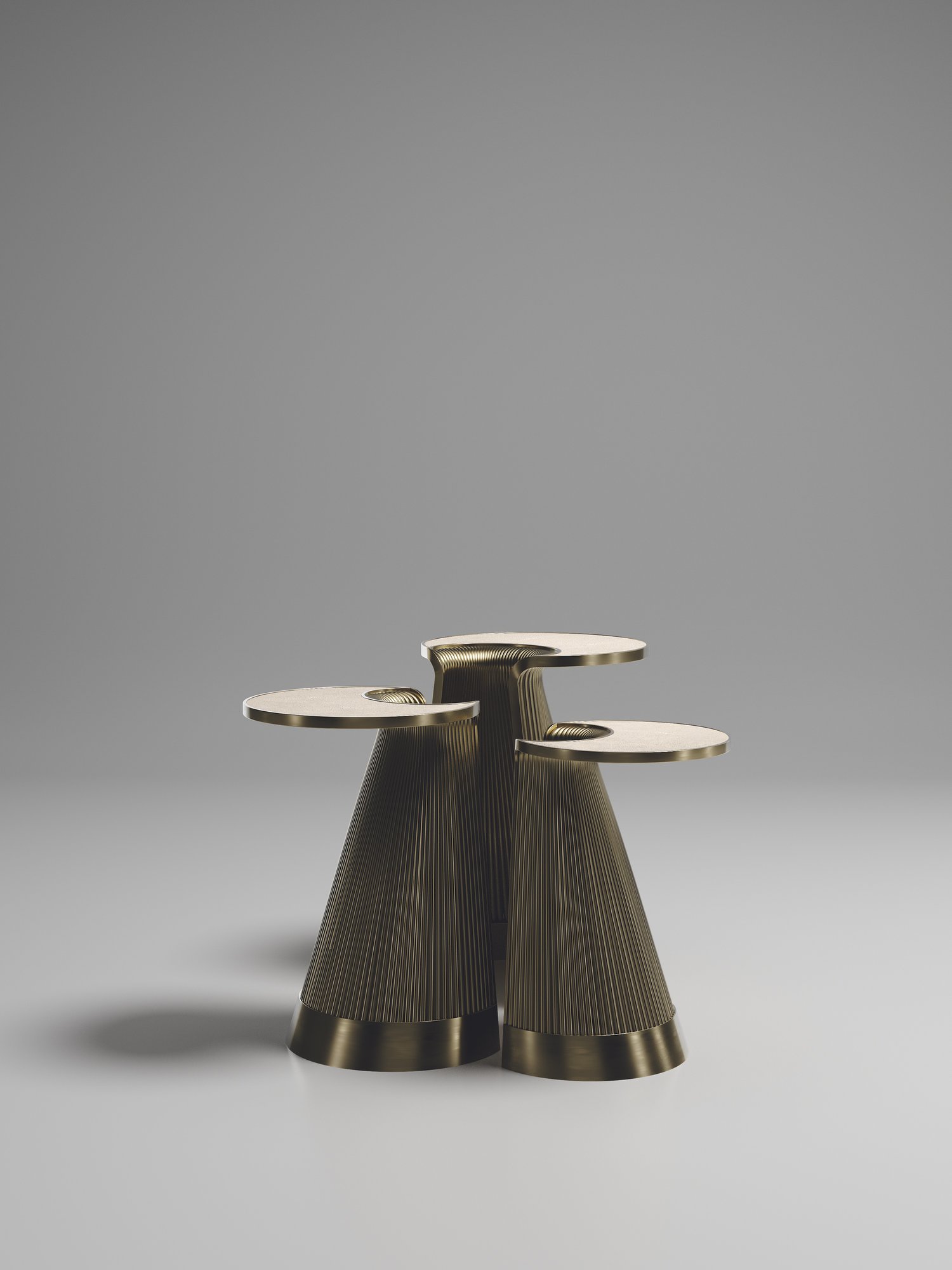 The Nymphea set of 3 nesting side tables by R & Y Augousti explore the brand's iconic DNA of bringing old world artisanal craft into a contemporary and utterly luxury feel. These pieces are done in different finish variations including shagreen, pen shell with bronze-patina brass accents. This listing is for the set of 3 nesting tables, the pieces are available to purchase individually on request. Custom sizing/finishing on request.