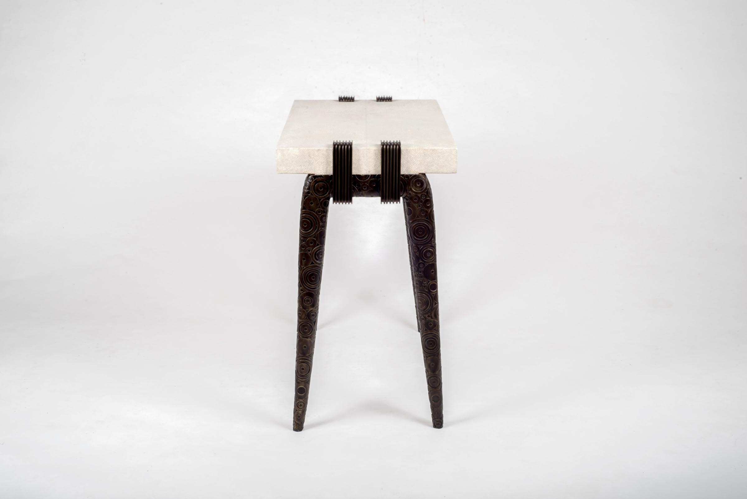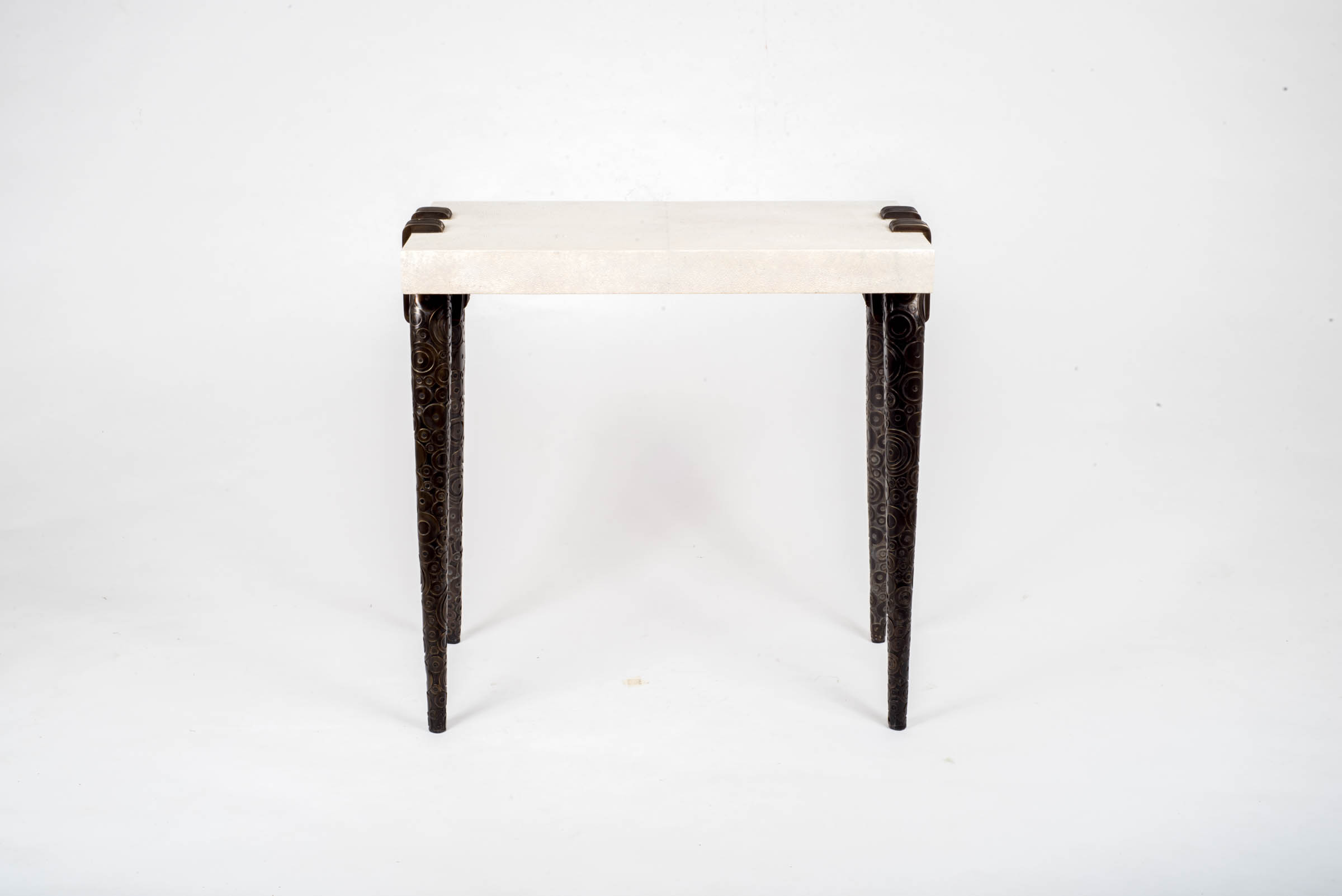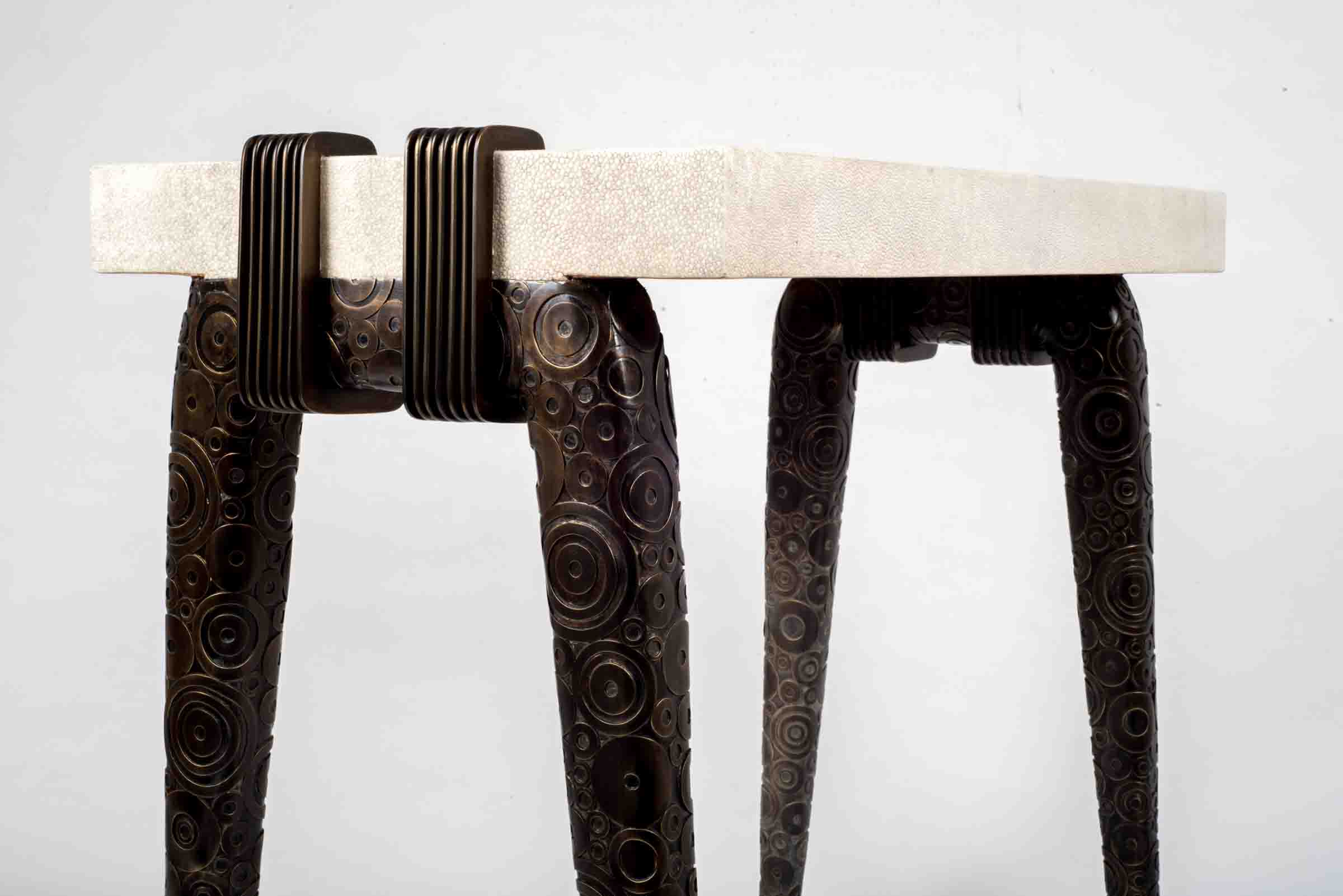The circular brass inlay details on the legs of the Vogue side table shows the true craftsmanship of Augousti artisans. This piece is a nod to the Art-Deco period while remaining contemporary in it’s design.