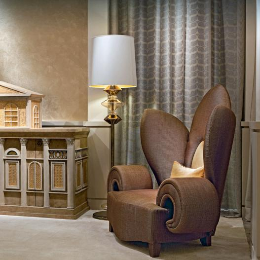 The human mind is a gift that we must learn to know; it must be trained to deal with the soul as a growing force, a flow of energy. This represents the Kundalini chair, of a precious velvet and with refined details in minute mosaic.