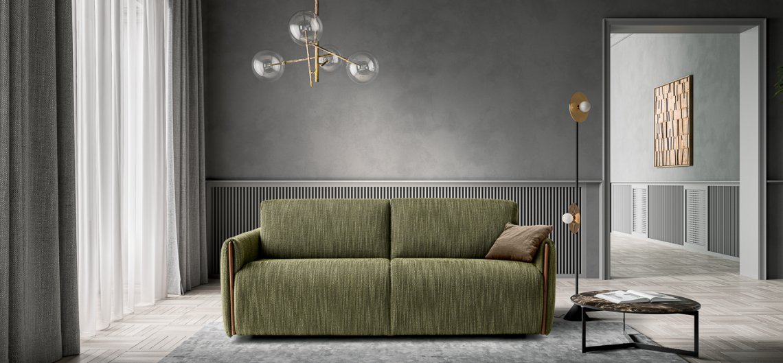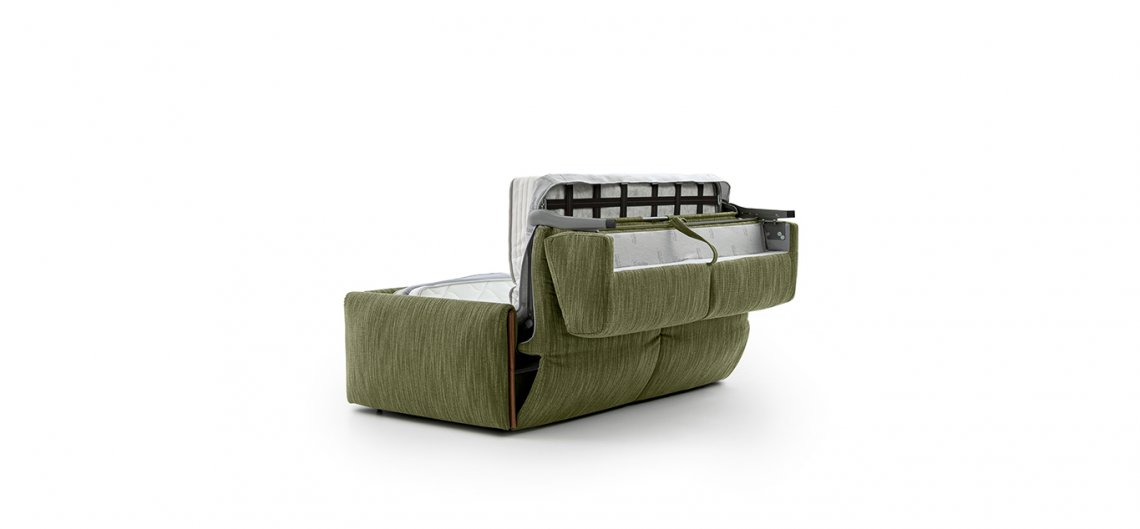 Semplice e confortevole ,dai braccioli sottili ma accoglienti, che a loro volta avvolgono un’anima di legno in noce canaletto, attribuiscono al modello uno stile caratteristico ed intramontabile. Con un semplice movimento si trasforma in un divano letto completo di un comodo materasso H16 cm. Progettato per creare scene d’atmosfera e ambienti ricchi di tradizione.