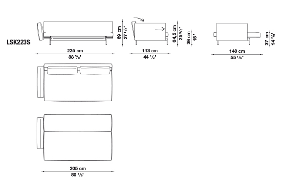 SAKé signals the beginning of Piero Lissoni’s collaboration with B&B Italia. The design begins from a strongly contemporary seating system distinguished by a careful search for formal balance. Seats in three sizes (cm 175, 210 and 270), with embracing or linear backs and arms of various dimensions added harmoniously to create a sofa adapted to the customer’s space and personal taste. The system is enhanced with a chaise longue element (cm 105 x 135) that lends itself to various interpretations: as the terminal element in a linear composition, with a more enveloping back and with the addition of armrests, it can stand on its own or, alongside another chaise lounge, it can create a sofa with deep seating. The details of the cushions and support base contribute to the design lightness. The seat cushion has refined modular stitching, ranging from cm 35 or cm 45; the back cushions, available in two sizes, are outlined by profiled bands. The seating system support base is made of crosspiece with rounded steel feet connected to each other by a bar.