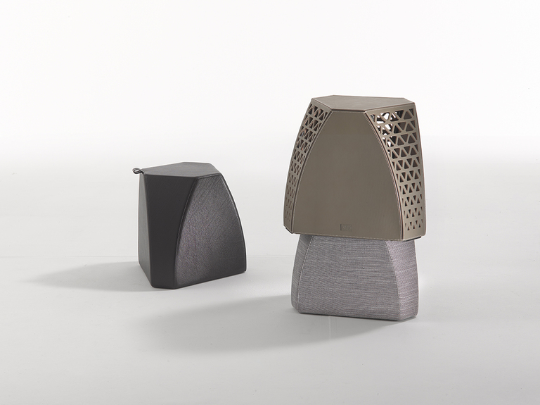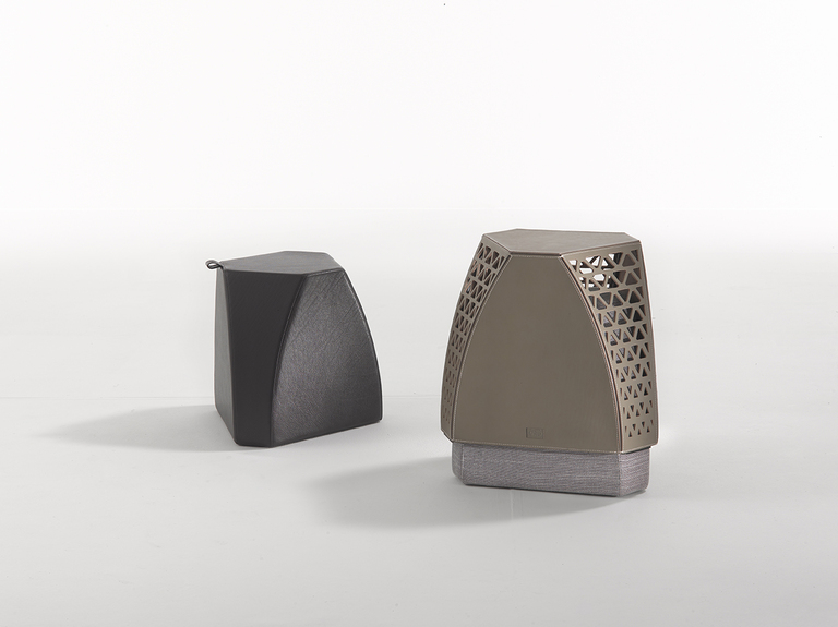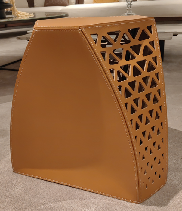 Virginia Harper設計的Hudson:典雅的中國盒子組合,虛實結合,兼具輕盈感和材質感。 Hudson 咖啡桌中內含另一個咖啡桌。第一個Hudson 咖啡桌是一個迷你建筑結構,以紐約的自由塔為靈感。內空的結構精湛重現六面體的造型并向上躍動。第二個為咖啡桌-圓沙發凳,能完美插入第一個咖啡桌空腔中。軟皮革或皮革小手柄可方便取出和移動圓沙發凳,并在另一個元素旁邊使用或單獨使用。
