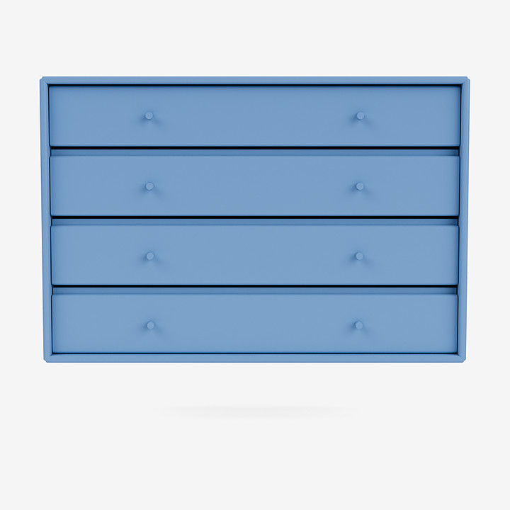 4122 抽屜模塊有四個寬抽屜,將必要的存儲空間與優雅精致的設計融為一體。使用抽屜模塊作為臥室的書桌、客廳的餐具柜或走廊的儲物件。無論您選擇在抽屜中放置什么,我們都將確保您擁有精湛且持久的工藝。該抽屜模塊有 Montana 40 種環保漆色可供選擇。選擇您個人最喜歡的并單獨使用 4122 模塊或與其他 Montana 模塊結合使用。我們為您提供從大膽的色彩組合到更簡約的構圖的任何選擇。選擇權永遠是你的。4122 柜體模塊的深度有 30、38 和 46.8 厘米,帶漆手柄。
