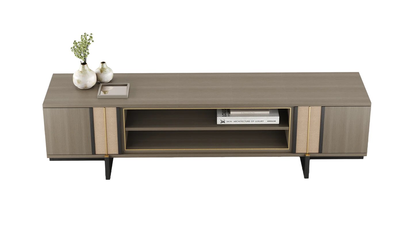 Brushed brass details perfectly offset the smooth wood finish of our GEORGIA TV Unit. It has just enough space for your TV, books and vases, too.