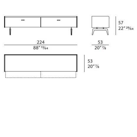 The Blues TV cabinet is designed to be highly customizable. The walnut wood structure supports two drawers whose fronts can be made of natural wood, leather or glossy lacquered wood. The top can be produced in natural wood, leather or precious marble. The Blues tv unit is available in different finishes as per sample books.
