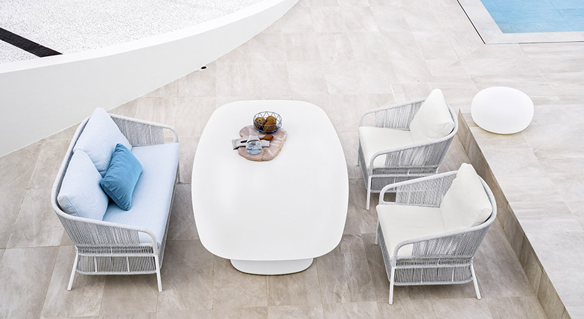 Residential and contract outdoor furniture. Suitable for marine areas.