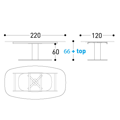 An essential design based on soft and rounded lines defines the modern and convivial aesthetic of the Big fixed table. A sturdy central cylindrical stem joins the top to the base, both elliptical in shape, giving solidity to the structure.
