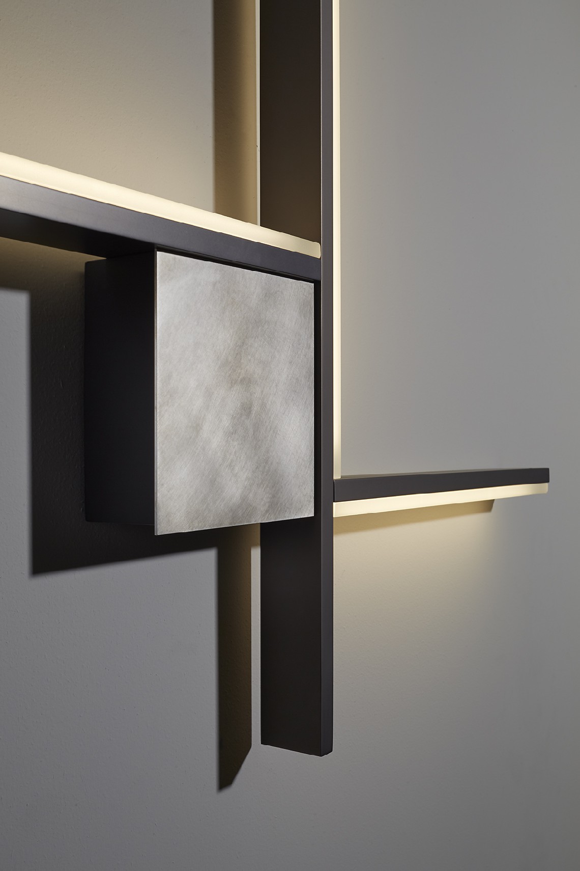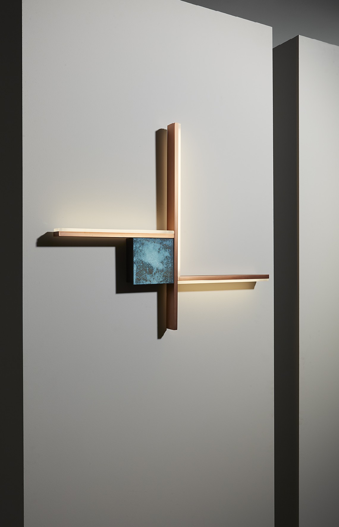 Delabré brass or matte black nickel structure. Pewter or antique copper plate. Satin glass diffusers th. 10 mm.