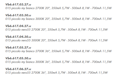 damp location rated recessed light fitting for indoor use. made of oxidised and powder coated die-cast aluminium, with stainless steel fixing springs. versions: 015 piccolo diameter ?85mm/3.3’’ h.70mm/2.8’’ wired with 2700K or 3000K led source up to 11.5W 1183lm, with 13° 20° 36° optics, available with constant current power supply not included, to be installed remotely or with 120V 50-60Hz power supply included. finishes: my bianco and nero55.