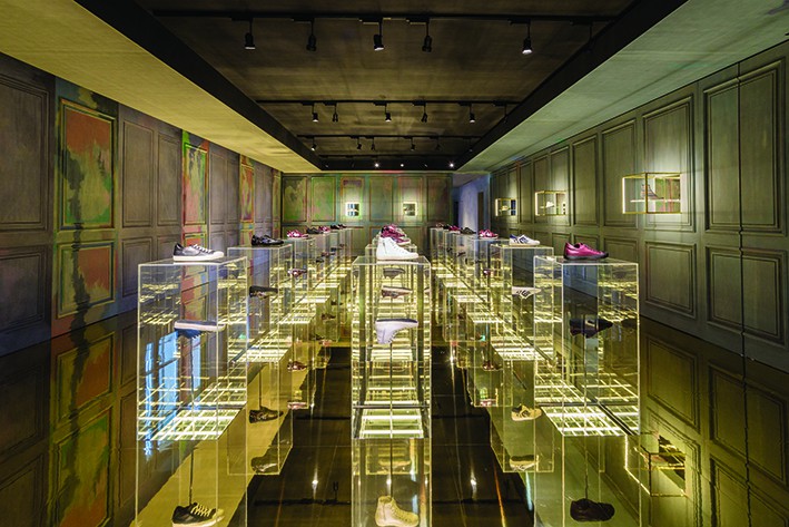 track system for indoor use. it consists of an extruded oxidised and powder coated aluminium having a 36x32mm/1.4”x1.3” section serving as an earth conductor and an insulating rubber insert that contains 4 copper conductors with a section of 2,5mm2/12awg. sizes: 1220mm/48”, 2440mm/96”, 3658mm/144”. supply voltage: 2~120V 50-60Hz up to 16A. accessories: left and right live end earth contact, lateral end cap, electrical straight coupler, curved joints, electrical straight coupler with feed, T-shaped joints, X-shaped joints, L-shaped joints, end caps. accessories: suspension steel cables. finishes: bianco V e nero55.