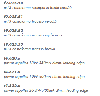 damp location rated recessed or fully concealed light fitting for indoor use, made of powder coated oxidized aluminium. consisting spotlight with recessed ceiling housing diameter ?155mm/6.1’’ which can be installed on surfaces from 1mm/0.04’’ up to 35mm/1.4’’ by means of a system of adjustable tabs or fully concealed housing diameter ?130mm/5.1’’ . versions: m13 fisso diameter ?123mm/4.8’’ h.148mm/5.8’’ spotlight, m13 orientabile diameter ?123mm/4.8’’ h.148mm/5.8’’ spotlight adjustable by 360° on the vertical axis and by 15° on the horizontal axis, m13 wallwasher with diameter 123mm/4.8’’ h.156mm/6.1’’ spotlight. wired with 2700K, 3000K or 3000Vb K (designed for high fashion industry) Ra98 led source up to 30.5W 3000lm. optics: 19° 28° 42° 54° or wallwasher. constant current 120V 50-60Hz power supply not included, to be installed remotely. accessories: interchangeable optics, honeycomb louvre, albarino filter, elliptical lens, frosted glass. finishes: spotlights my bianco or nero55,
