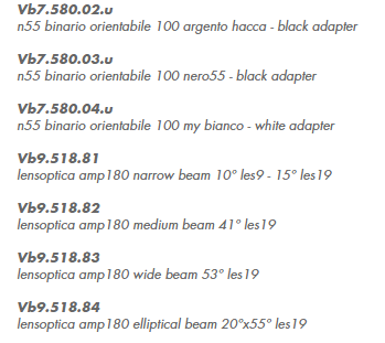 dry location rated track light fitting for interior use, made of oxidised aluminium. versions: n55 binario adjustable version, 52x198mm/2x7.8’’ with h.100mm/3.9’’ which can be paired with the following propulsori dinamici n55: 55/350e les19 up to 9.7W 350mA 1240lm, 55/350 les19 up to 9.7W 350mA 1240lm, 55/500 les19 up to 14W 500mA 1580lm, 55/500 les9 up to 13.6W 500mA 800lm, 65/500e les19 up to 14W 500mA 1580lm, 65/700 les19 up to 19.9W 700mA 2140lm, 65/700 les9 up to 19.5W 700mA 1110lm, 82/1050 les19 up to 30.5W 1050mA 3000lm. all propellers are Ra98 1 step macadam with 2700K, 3000K or 3000Vb K (designed for high fashion industry) led source. the specific n55 joint allows to change three types of light bulbs: classic, decorative and technical. any irregularities in the glass are a guarantee of an unique product, blown and entirely hand crafted by master glassmakers. track adapter available with 120V power supply with smart control which automatically provides the suitable current according to the type of propeller. finishes: argento hacca with white or black track adapter; nero55 with black track adapter; my bianco with white track adapter. classic and decorative bulbs with transparent, sanded and milk white glass. customize your light visit www.Viabizzuno.com