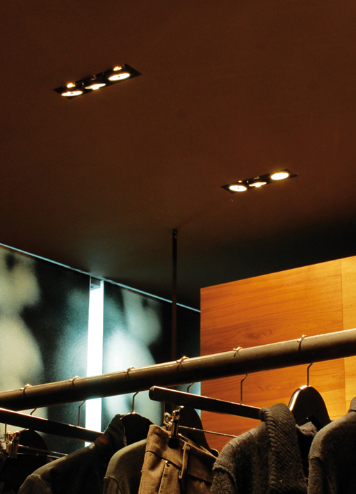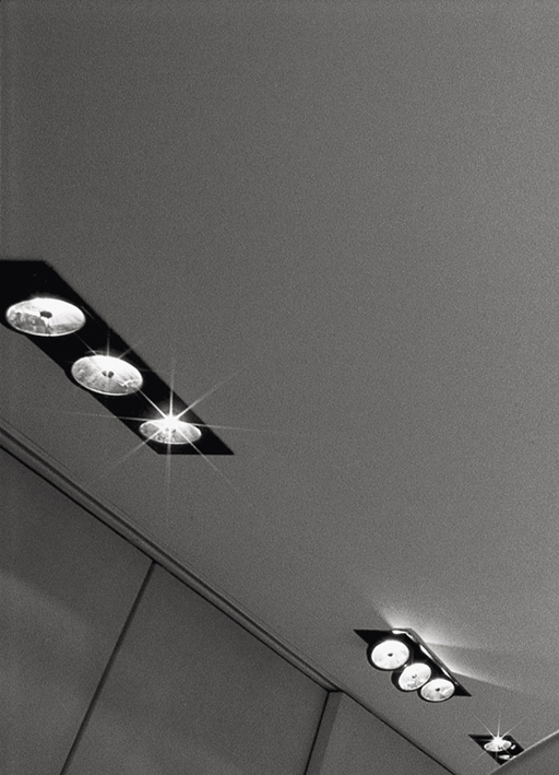 IP20 rated recessed light fitting for indoor use. body and front frame made of powder painted steel and heat sinkers made of oxidised aluminium. versions: minitraffic 02 280mm/11”x120mm/4.7” with two spotlights, wired with 3000K 18,6W 1950lm. optics 15° 24° 31° components: galvanized housing. finishes: bianco V or nero55.