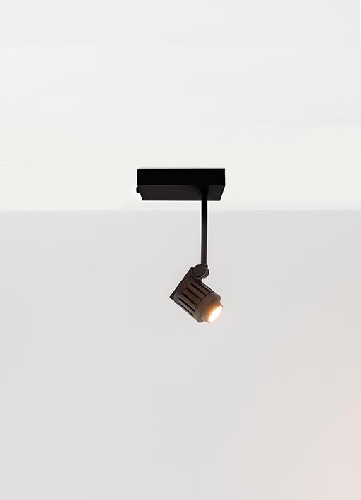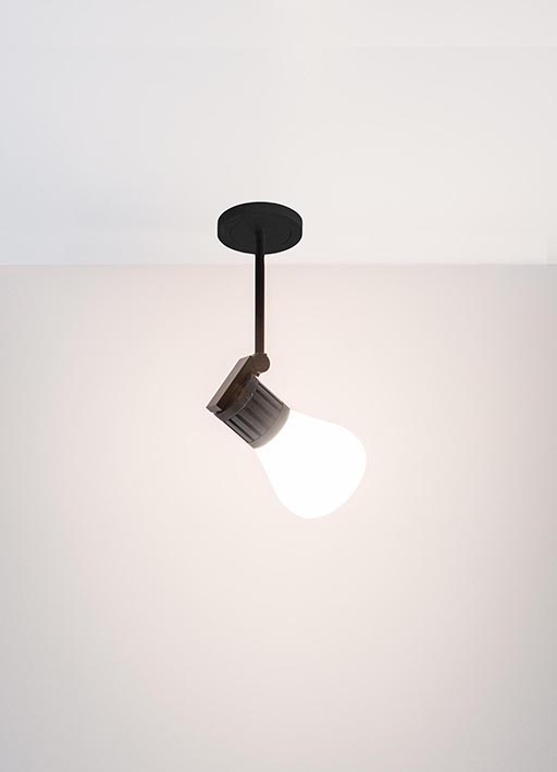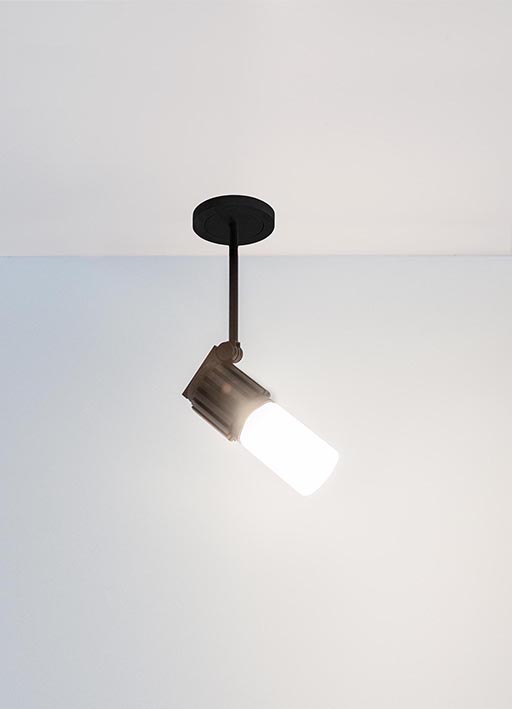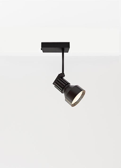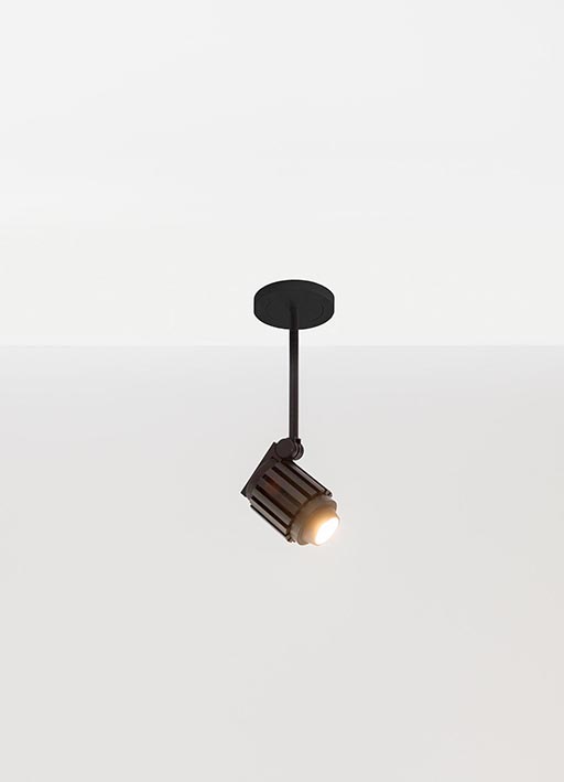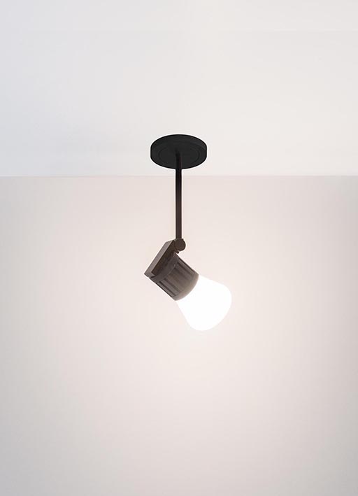 damp location rated wall or ceiling light fitting for indoor use made of oxidised aluminium.