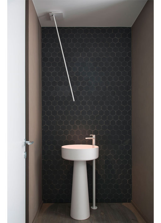 dry location rated ceiling light fitting for indoor use. made of extruded aluminium rods with a diameter 14mm/0.5’’ 1200mm/47.2’’ connected to a 170x170x40mm/6.7x6.7x1.6’’ steel support plate with a spherical joint that allows an inclination up to 30° on the vertical axis. versions: peled soffitto with 1 rod, peled soffitto with 4 rods, peled soffitto with 8 rods. wired with 3000K Ra98 1W led source. 120V 50-60Hz power supply included. accessories: joint, front plate for 1, 4, 8 and 16 rods. finishes: bianco V, polished black and polished stainless steel plate, aluminium rods painted in polished black